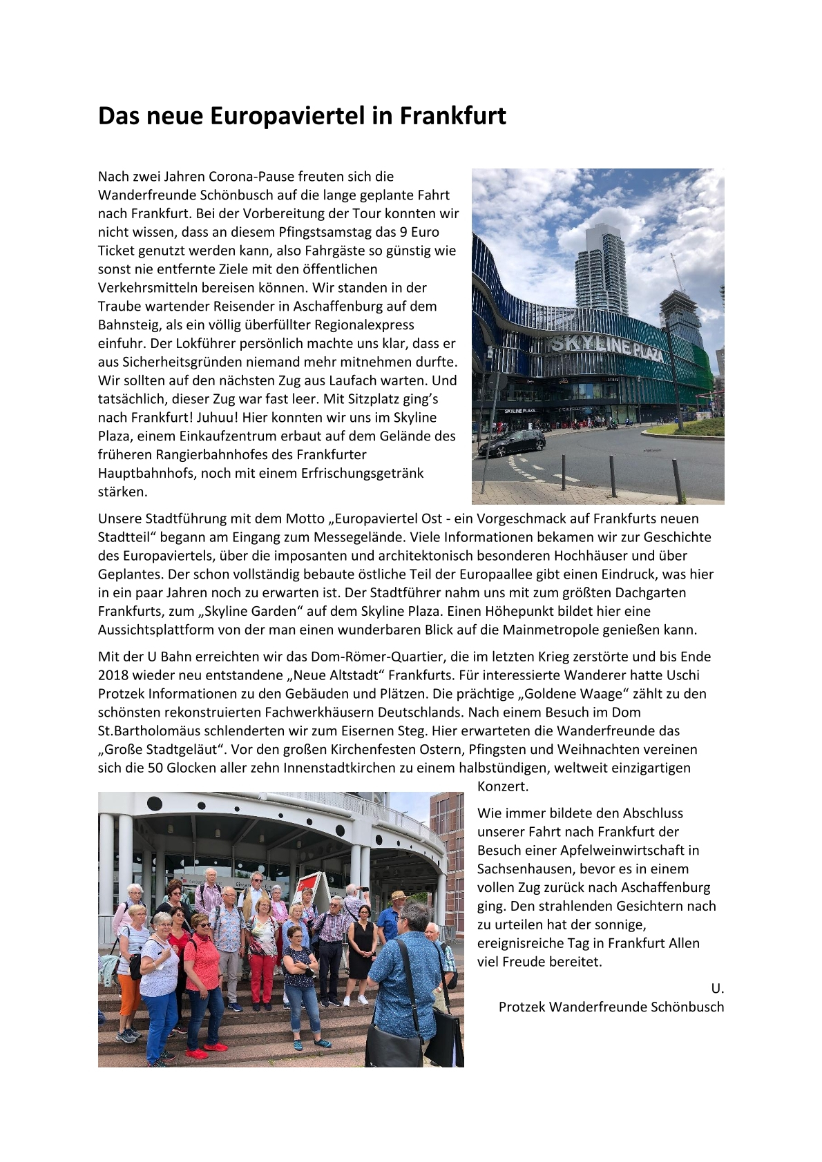 Von den Wanderfreunden Schönbusch waren zwei Gruppen bei Wanderungen unterwegs. Fünf Wanderfreunde/freundinnen waren in Bad Oberdorf (Hindelanger Tal) und sechs weitere wanderten auf den Oberstdorfer Höhenwegen und im Kleinen Walsertal. Das Wetter meinte es insgesamt nicht gut. Obwohl es keinen andauernden Regen gab, beeinträchtigte der Morgennebel an den meisten Tagen die Aussichten in der Gebirgslandschaft.