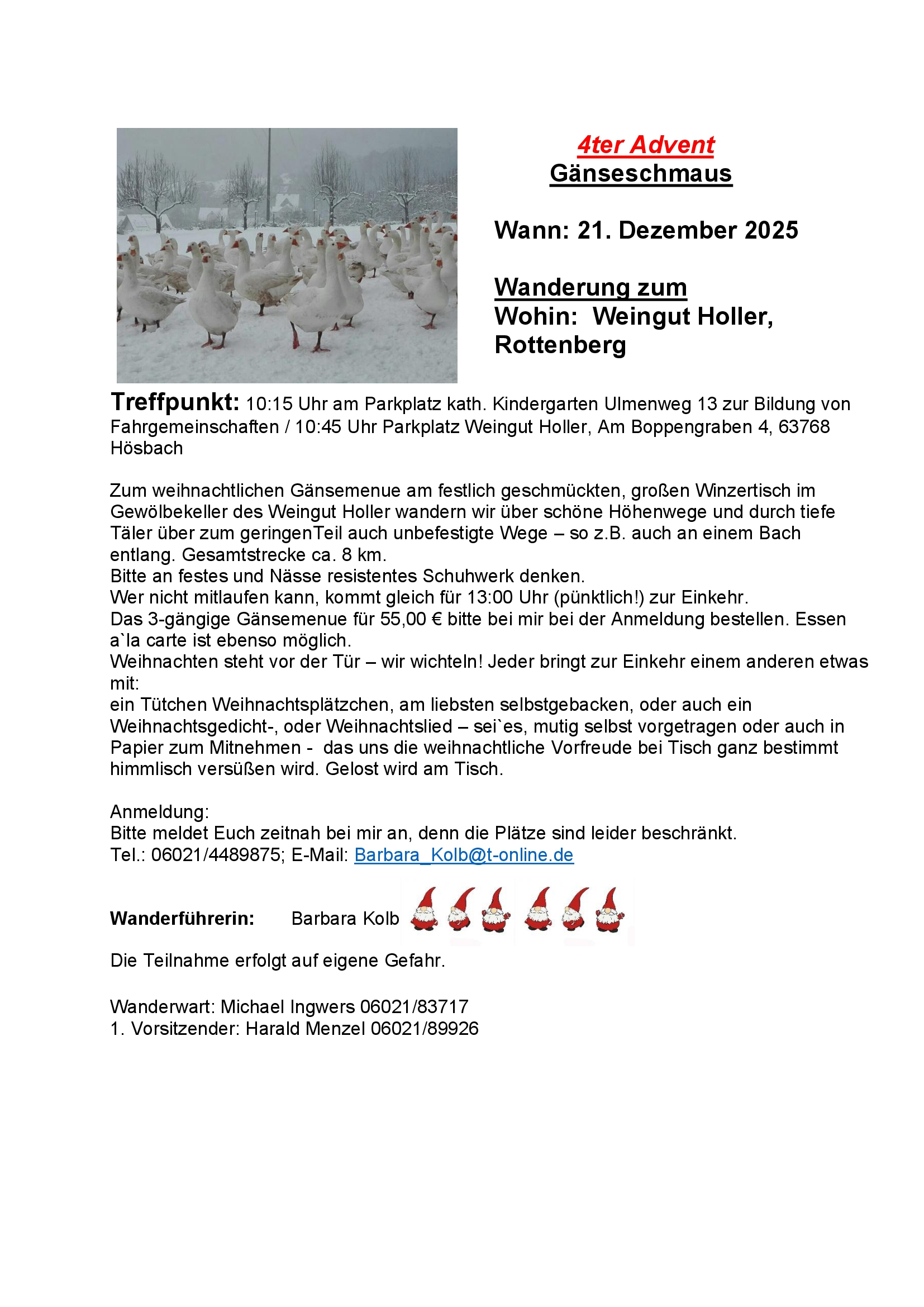 Bitte meldet Euch bis zum 12.11. an: Guenther.Reichel@wanderverein-nilkheim.de