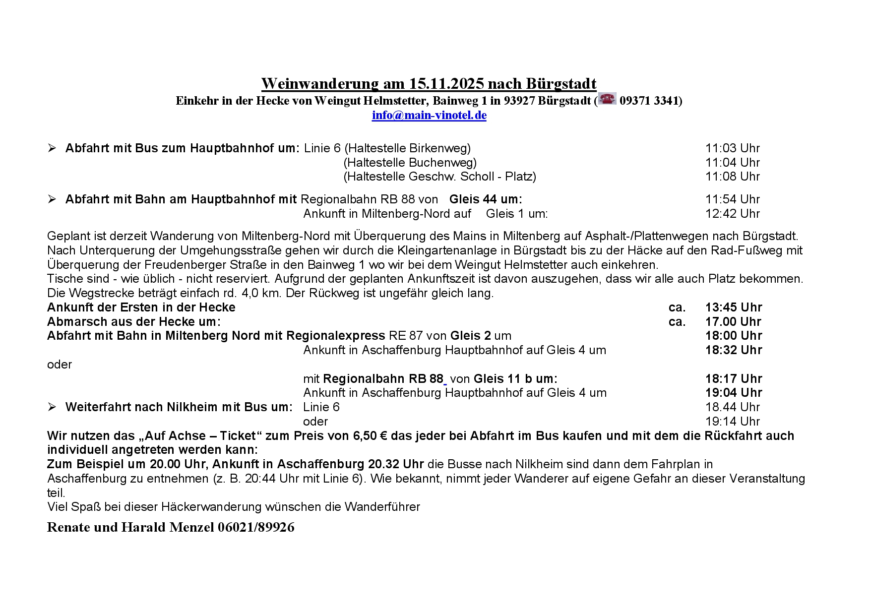 Bitte meldet Euch bis zum 22.10. an: Guenther.Reichel@wanderverein-nilkheim.de