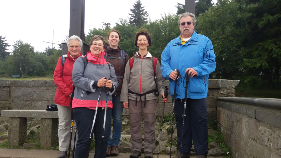 Eine kleine Gruppe von fünf Wanderern startete am 05.09.2015 in die Bayrische Rhön, um den „Heiligen Berg der Franken“ zu erwandern. Unser Auto parkten wir in Bischofsheim am Parkplatz Pfarrgrund, wanderten über den Marktplatz, dann entlang der alten Stadtmauer und erreichten bald Unterweißenbrunn. Im Ort zweigte der mit „NH“ markierte Weg ab und führte uns immer bergauf, bis zum Irenkreuz und weiter durch den Wald zum Neustädter Haus. Hier hatten wir uns ein leckeres Leberknödelsüppchen verdient. Entlang des blauen Keiles wählten wir nun den etwas längeren Weg zu den Drei Kreuzen auf dem Kreuzberg. Es ist immer wieder schön von hier aus über die weite Rhön zu blicken, bevor man die Stufen hinunter zum Kloster steigt. Nach einer Rast ging es gestärkt weiter durch karge Rhönlandschaft. Leider fehlte die Sonne, so dass die unzähligen Silberdisteln am Weg und auf den Wiesen ihre Pracht nicht entfalteten. Ebenso viele Herbstzeitlosen erinnerten uns daran, dass der Sommer nun zu Ende geht. Die Osterburg war bald erreicht und es erwartete uns ein steiler Abstieg im Wald, bis wir endlich, durch saftige Wiesen wandernd, wieder in Bischofsheim ankamen.
