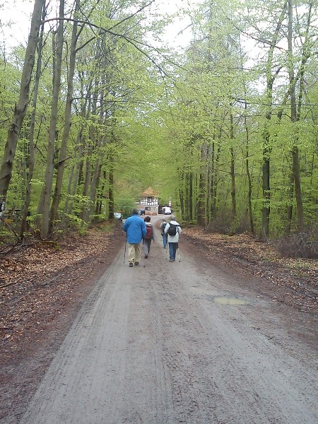 Am Sonntag, dem 18. Mai 2014 startete eine Gruppe von 12 Wanderern mit dem Linienbus zur Abzweigung Wartturm vor Schaafheim. Durch eine grüne Landschaft mit Getreidefeldern und Buschgruppen wanderten wir bis zum Waldrand beim Elterhof. Dort ging es leicht bergauf in den Waldbereich. Oben konnte man am Horizont die Skyline von Frankfurt erkennen. Kurze Zeit danach standen wir neben den vier Windrädern, die wir schon ab dem Beginn vor uns gesehen haben. Die beiden neueren Anlagen sind insgesamt 179 Meter hoch. Nach dem mehrmaligen Queren von Straßen kamen wir kurz nach 12 Uhr am Rödelshäuschen an. Das Rödelshäuschen ist eine schöne Rastanlage mit Tisch und Bänken, und war wie geschaffen für eine Mittagsrast. Der Name ist einem ehemaligen Förster gewidmet. Über einen schönen Wanderweg mit Feinschotter kamen wir zur Kleinen Zinshecke, einer ehemaligen Zollstation an der damaligen Handelsstraße. Ein weiterer bekannt Punkt war die Stelle des ehemaligen Radheimer Turmes. Nun ging es auf einem neu trassierten Weg bergab nach Radheim. Der Ausblick auf den Ort in seiner grünen Umgebung war ein schöner Abschluss. Leider konnten wir in Radheim nicht wie vorgesehen einkehren. Das einzige Gasthaus nahm wegen einer Familienfeier keine Gäste auf.