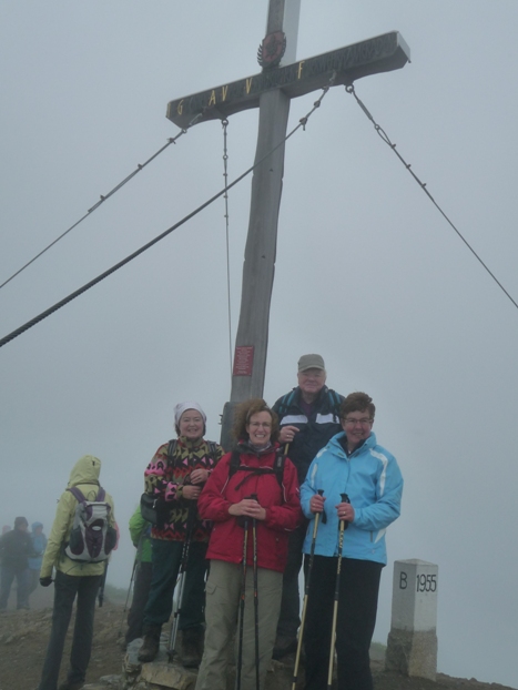 Eine weitere Bergwanderung begann an der Gipfelstation der Fellhornbahn. Während bei Start noch schöne Sicht war, zogen in der Höhe Nebelschwaden auf. Das Gipfelkreuz am Fellhorn (2039 m) wurde somit etwas vernebelt fotografiert. Auf dem Weiterweg, entlang des schmalen, teilweise seilgesicherten Gipfelgrates, verzog sich der Nebel und gab die herrliche Bergwelt des Allgäuer Hauptkammes und das Kleine Walsertal frei. Nach einem Abstieg zur Schlappoldt-Alpe ging es zur Zwischenstation zurück.